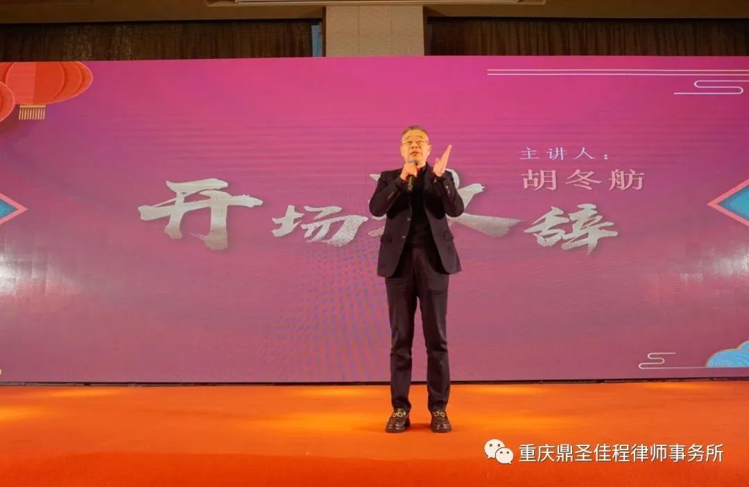 表演结束后,我所管委会主任蒋文斌上台致辞,并对全所律师寄予美好祝愿,希望我所律师在新的一年“凝心聚力 笃志前行”,共同将鼎圣佳程推向一个新的台阶。